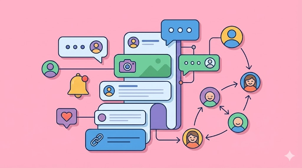 Social platform with real-time messaging, notifications and dynamic feeds