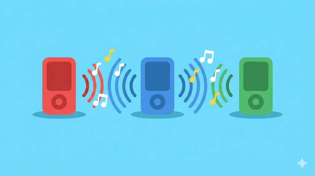Real-time music sync tool with virtual room listening and seamless playback control.